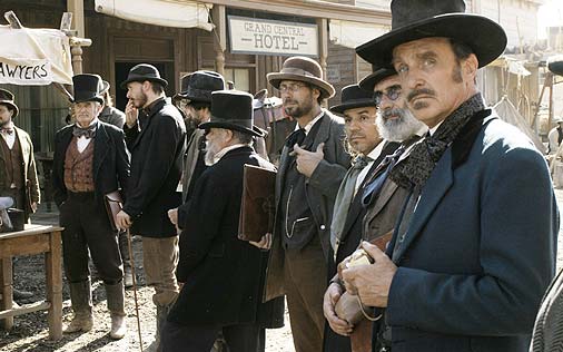 I haven’t been able to get a clip of my appearance on HBO’s Deadwood, but I did happen to come across these stills from the website. I’m in the first one on the far left, with half my face cut off.